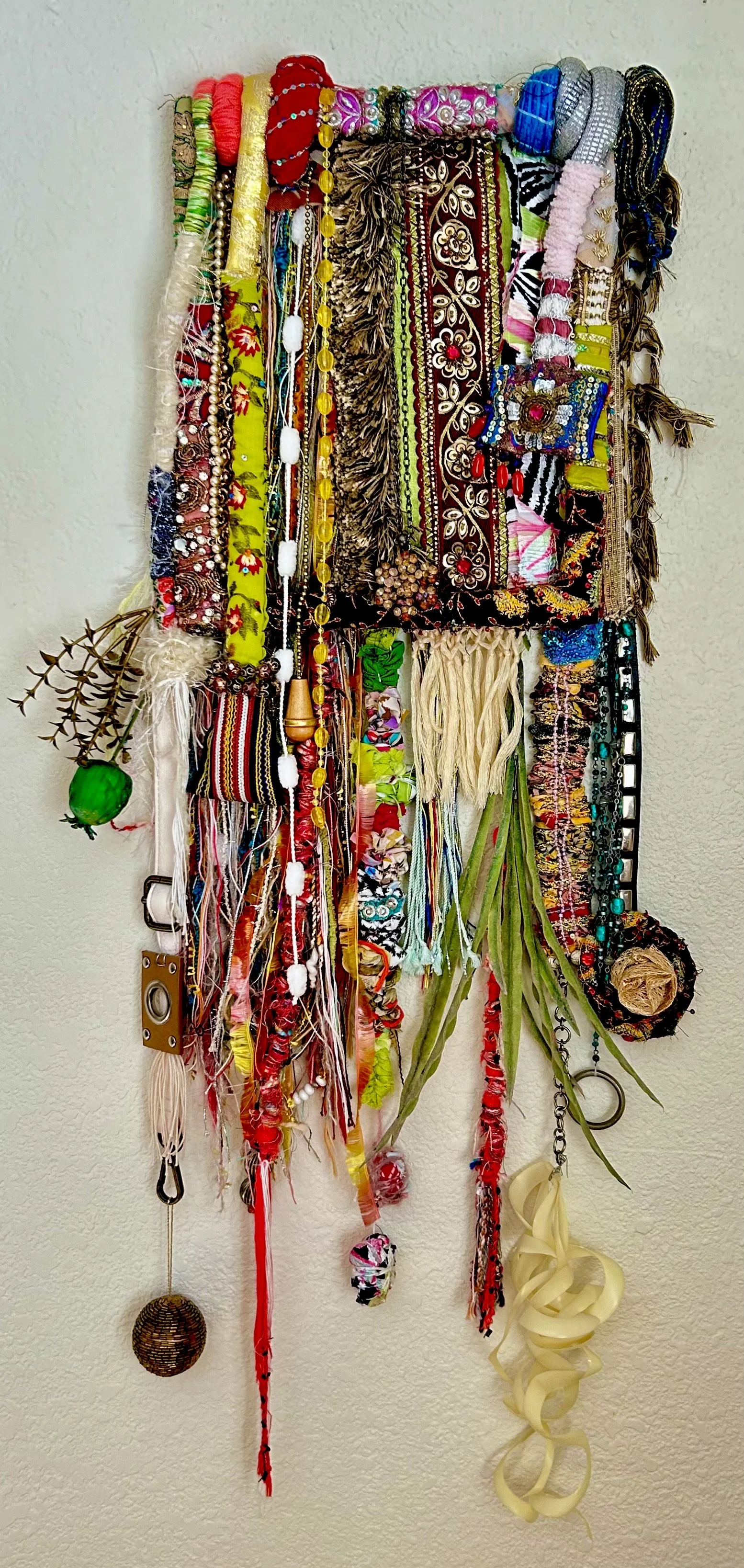 You'll begin by wrapping a frame with fun fabrics and fibers, then adding all sorts of elements within, around, behind and hanging off of the frame. Learn many fun and exciting techniques for creating shapes, wraps and protrusions to make your wall piece gorgeous and unique. In addition to the fibers, you can add on decorative elements such as beads, found objects, etc. You'll be encouraged and supported to go beyond art that you've made in the past, to develop a sense of experimentation and innovation, and to make something you've never imagined making.
